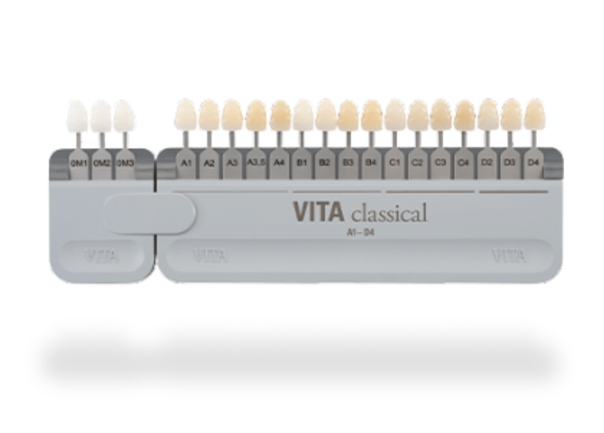 Tooth shade selection Vita Classical available in 16 standard and bleached shades.